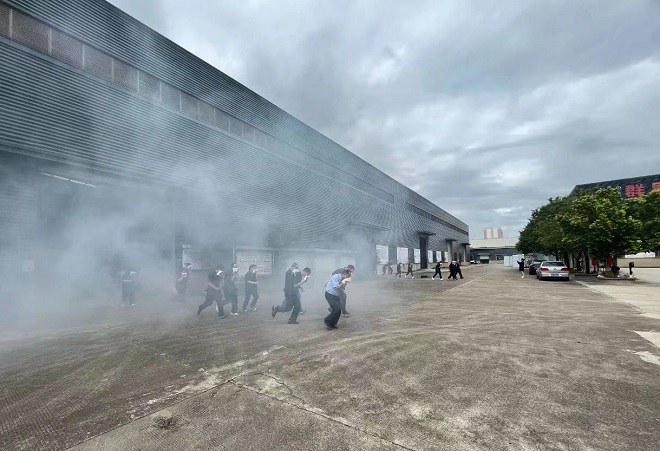 隨著(zhù)一陣刺耳的警鈴聲劃破寧靜的早晨,模擬火災現場(chǎng)被瞬間激活,火光沖天,濃煙滾滾。在這突如其來(lái)的危機時(shí)刻,群星電纜迅速啟動(dòng)應急預案,各級指揮人員立即到位,各司其職??傊笓]林海明臨危不亂,迅速做出決策,一方面組織員工有序疏散,另一方面調度專(zhuān)業(yè)消防隊伍迅速投入滅火行動(dòng),整個(gè)過(guò)程展現出了高效的組織協(xié)調能力和臨危不亂的領(lǐng)導風(fēng)范。